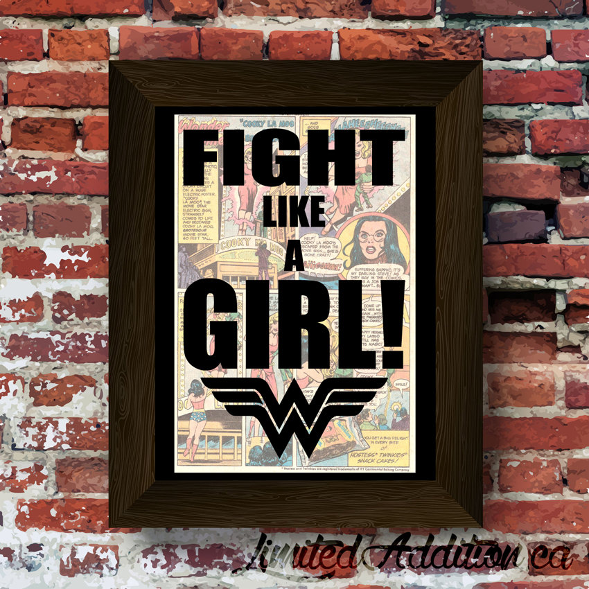 Wonder Woman Inspired Fight Like A Girl Quote With Symbol Upcycled Vintage Comic Book Art Print 0049 Limited Addition Online Store Powered By Storenvy