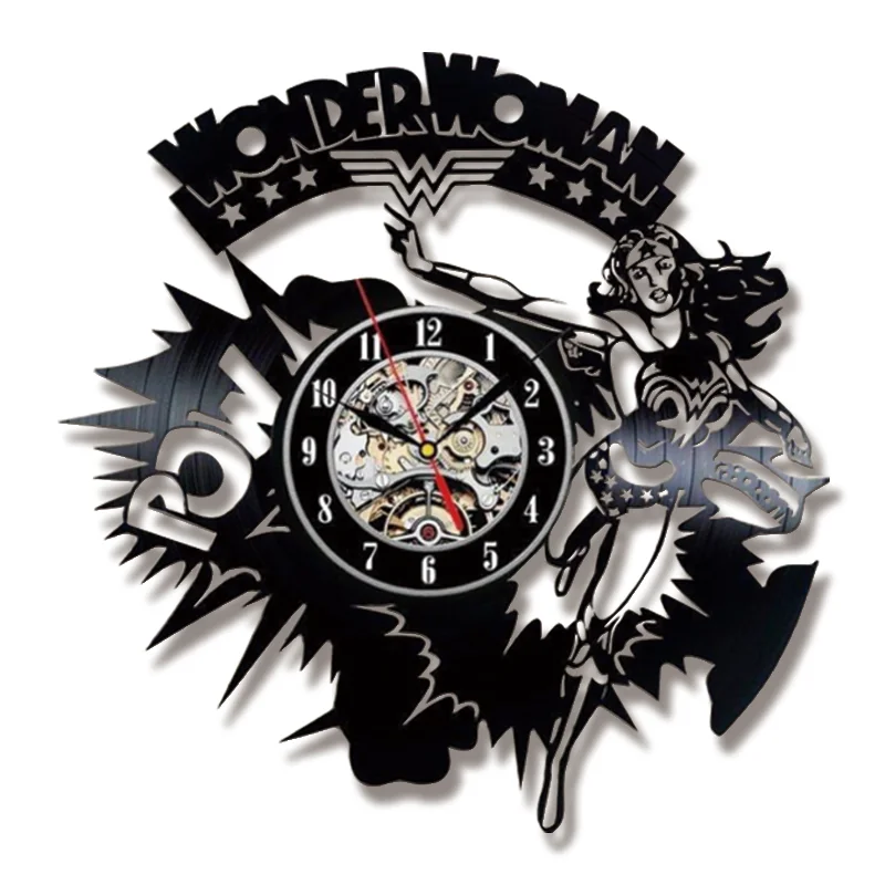 Vinyl Cd Record Wall Clock Modern Design Wonder Woman Theme Clocks