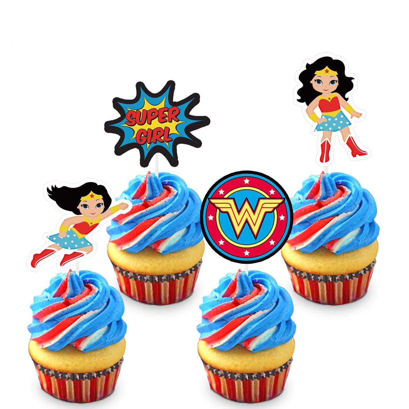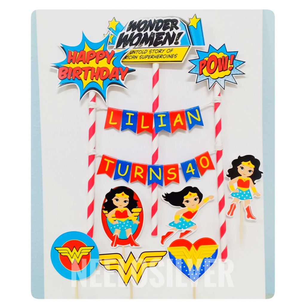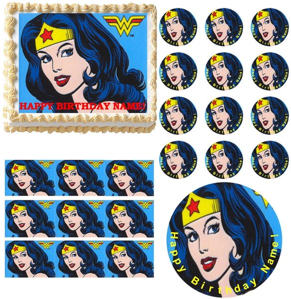 Edible Super Hero Kit Wonder Woman Cake Topper Cupcake Decorations