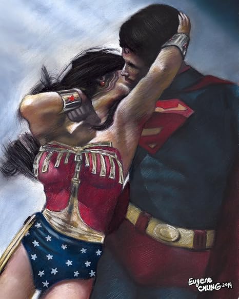Superman Kiss Wonder Woman Home Decor Hd Canvas Print Picture Wall