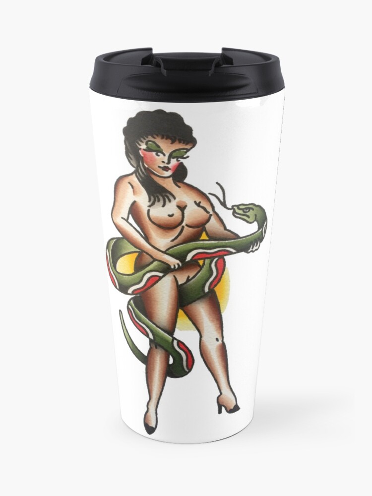 Traditional Snake Charmer Pin Up Tattoo Design Travel Mug By