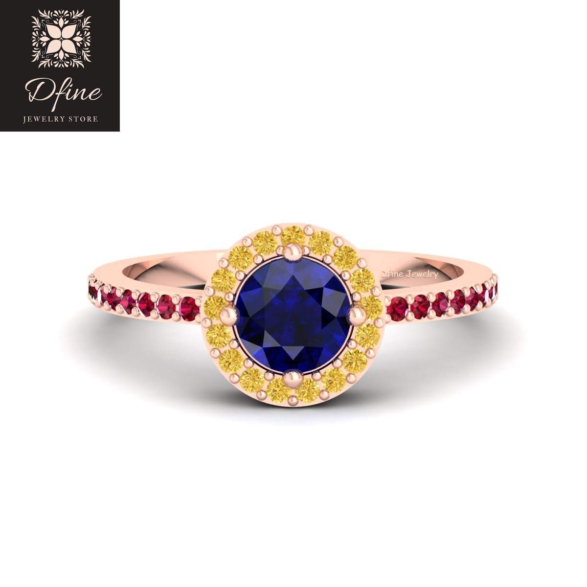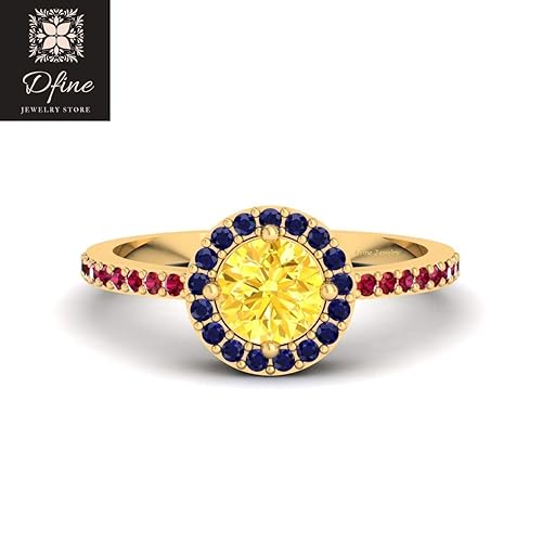 Amazon Com Halo Engagement Ring Pink Ruby Yellow And Blue Cz