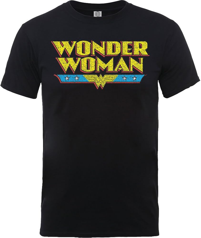 Amazon Com Wonder Woman Men S Logo Crackle T Shirt X Large Black www.amazon.com